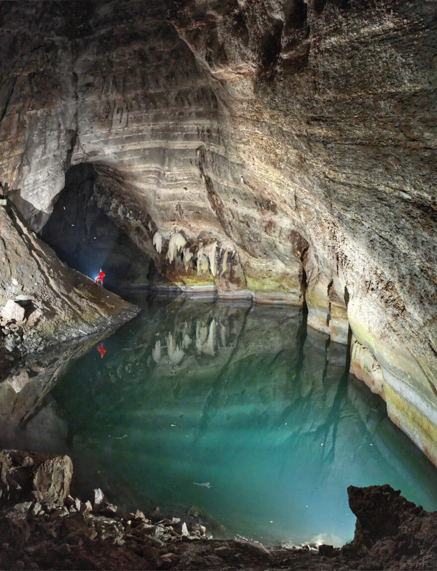 Nově objevené největší geotermální jezero světa Neuron. Objevitelé Marek Audy a Richard Bouda. Foto Marek Audy