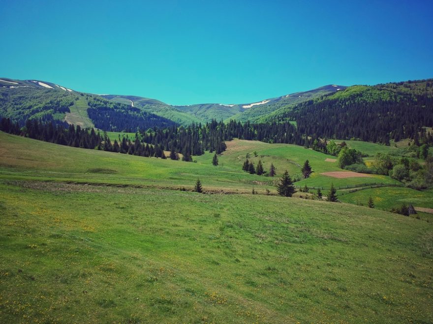 Nádherná krajina ukrajinských polonin u vesnice Pylypets