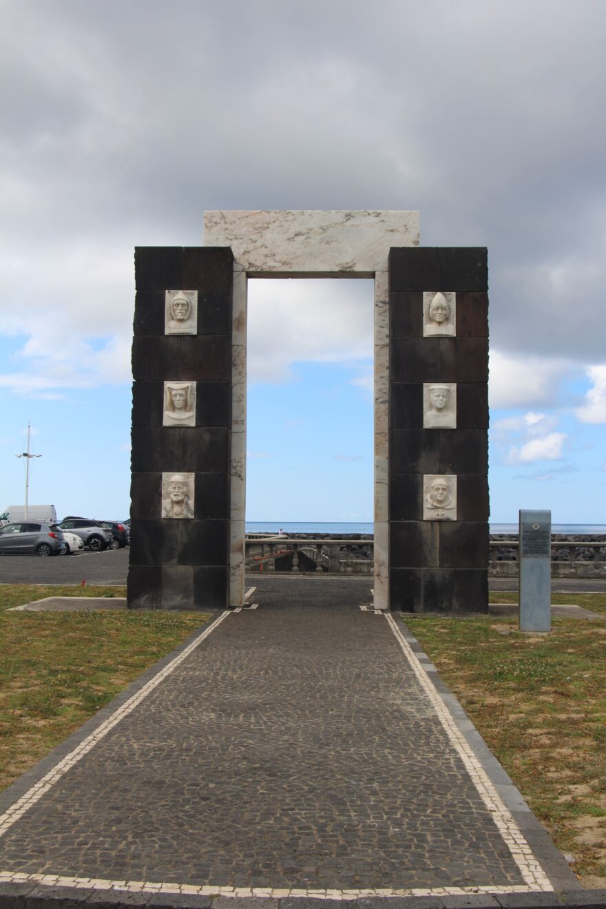 Oboustranná symbolická brána ve městě Povoacao upomíná na počátky kolonizace Azor Portugalci