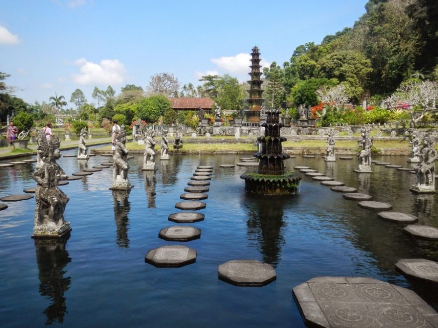 Vodní zahrady Tirta Gangga, příjemný park s fontánami a pagodami