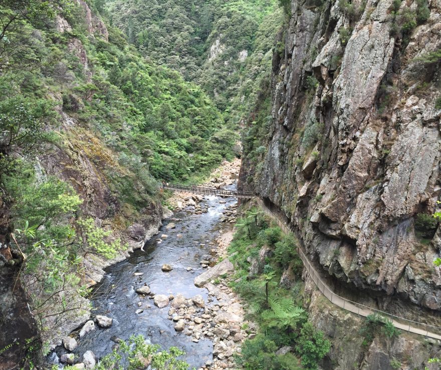 Trať pro těžební vozíky, Karangahake Gorge, Coromandel, Nový Zéland