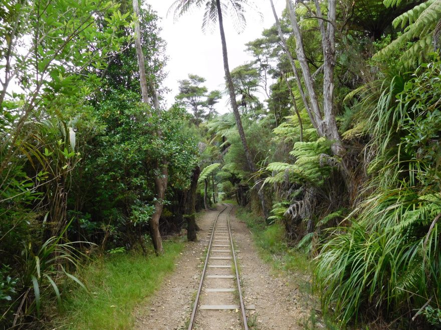 Trať pro těžební vozíky, Karangahake Gorge, Coromandel, Nový Zéland