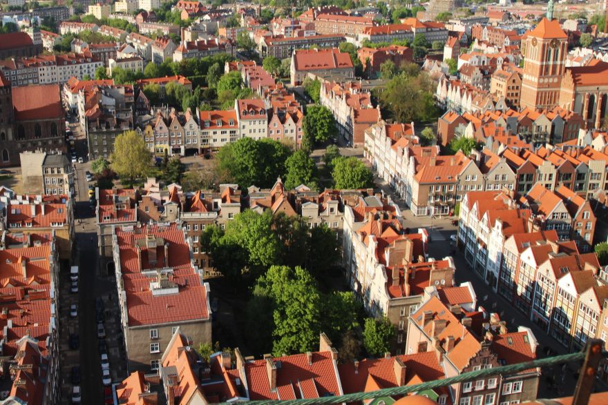 Pohled na město z věže kostela, Gdaňsk, Polsko