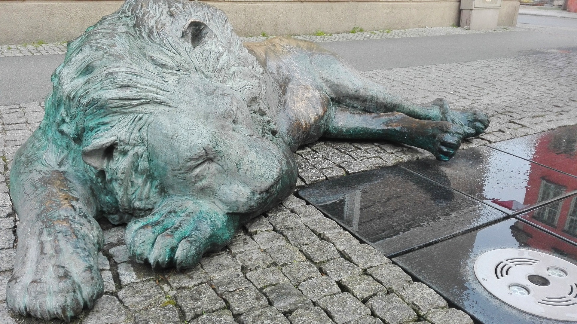 Gdaňsk hlídají čtyři velcí lvi, Polsko