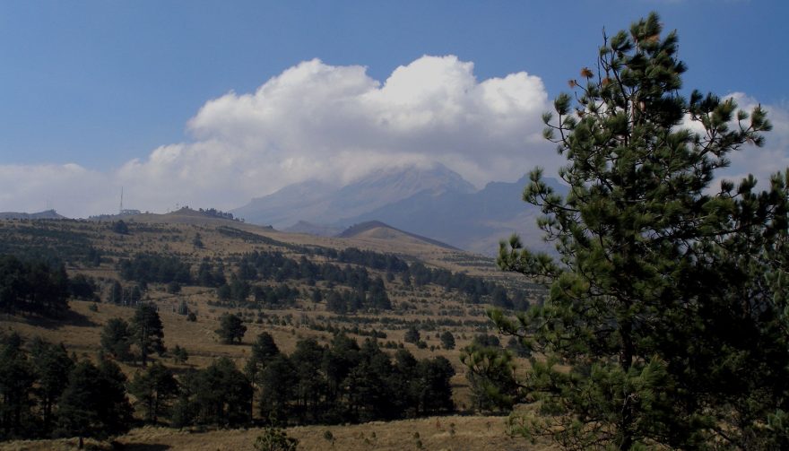 Popocatépetl z naučné stezky nedaleko Paso de Cortéz