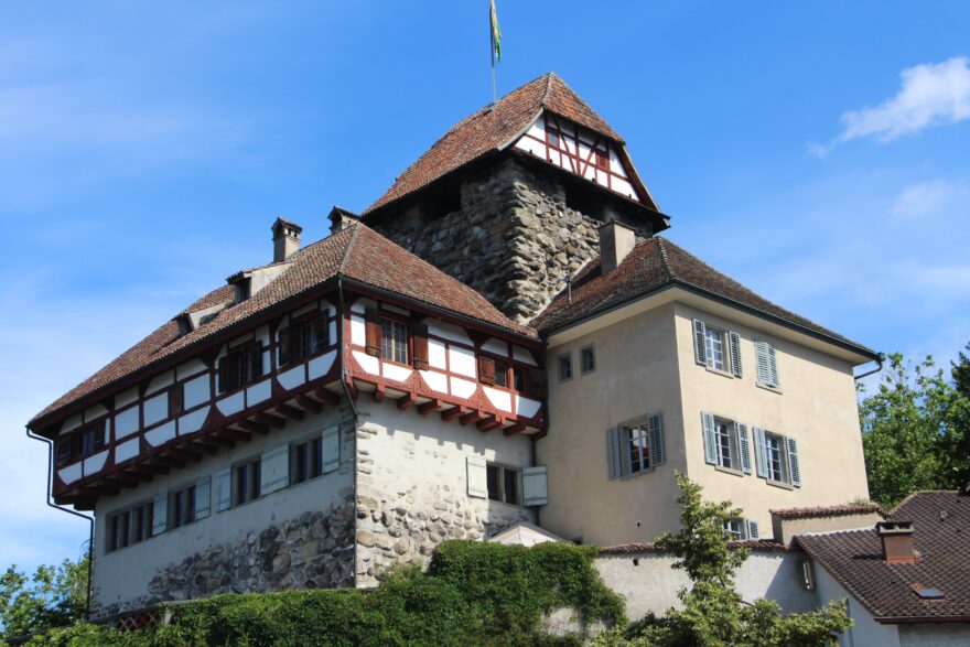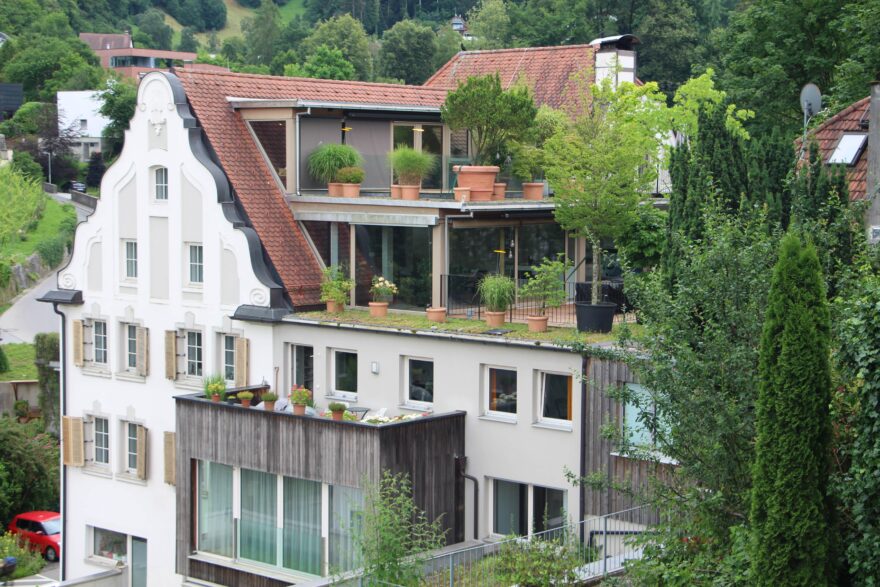 Bývalá městská plovárna v Rorschachu ukazuje vzedmutou hladinu jezera