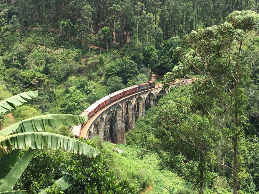 Vlakem mezi čajovými plantážemi Ella, Srí Lanka