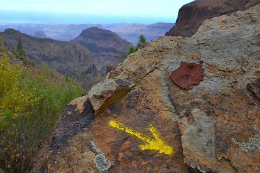 Turistické značení Svatojakubské stezky na Gran Canarii.