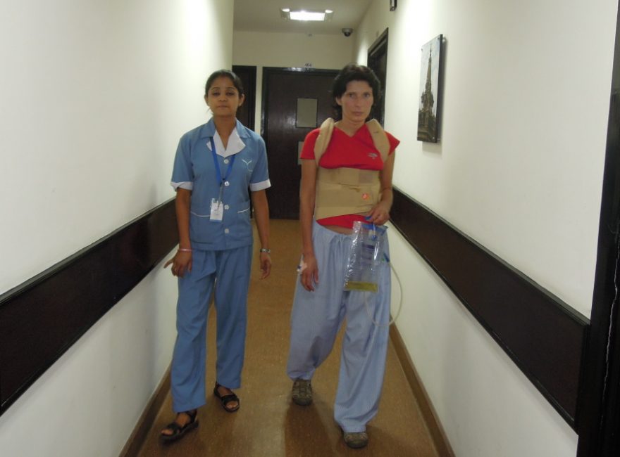 Převoz sanitou k letadlu v Abu Dhabi