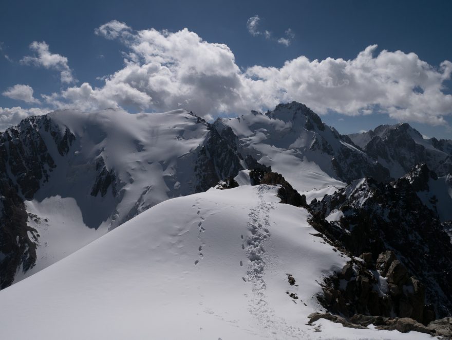 Výstup na Pik Učitel nedaleko Biškeku, Kyrgyzstán