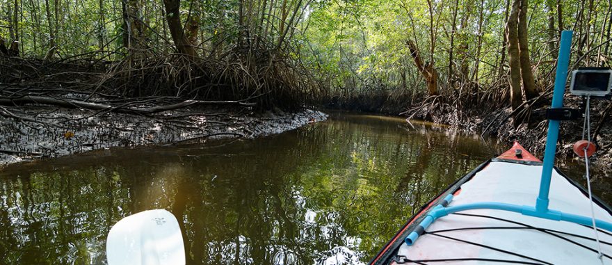 Jedno z vodních ramen za maximálního přílivu, Thajsko