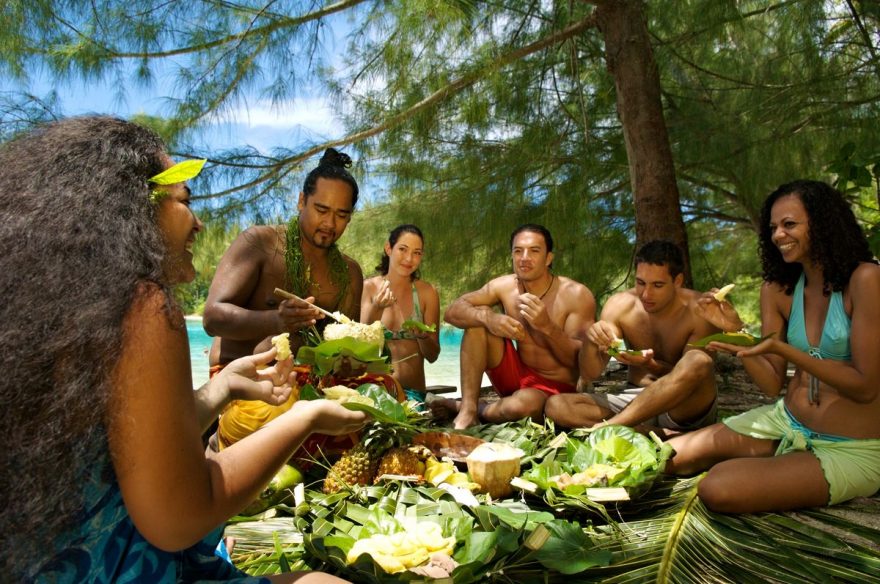 Galerie: Robinsonův piknik na motu: čerstvé ovoce, právě ulovené ryby a kokosy