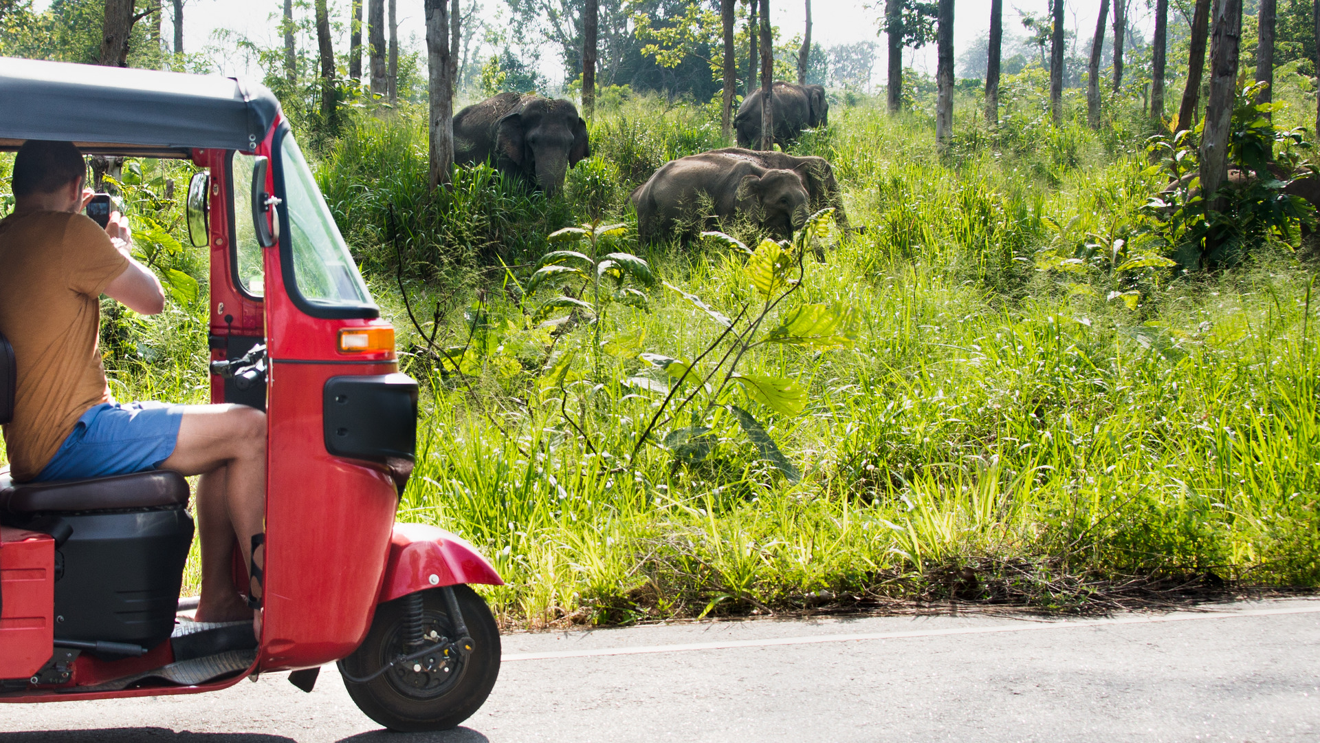 Focení slonů z tuktuku