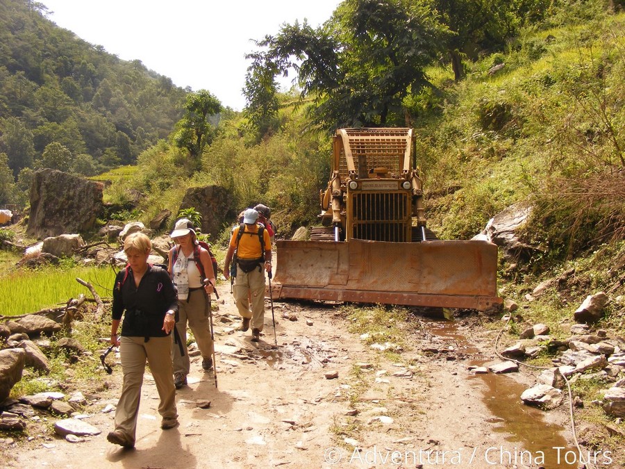 Stavba silnice v horách, Nepál
