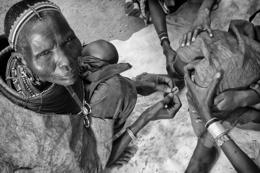 Obřezávačka Cecilia se právě chystá k obřízce mladé samburské dívky