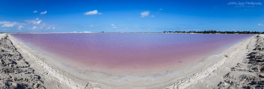 Růžová laguna je pro svoji vysokou koncentraci soli je nazývána „mexickým Mrtvým mořem“