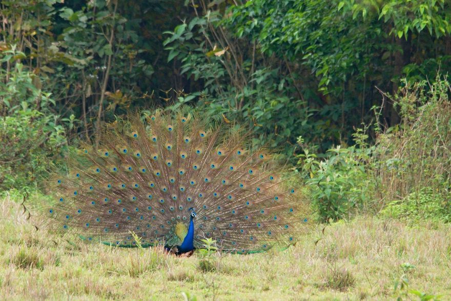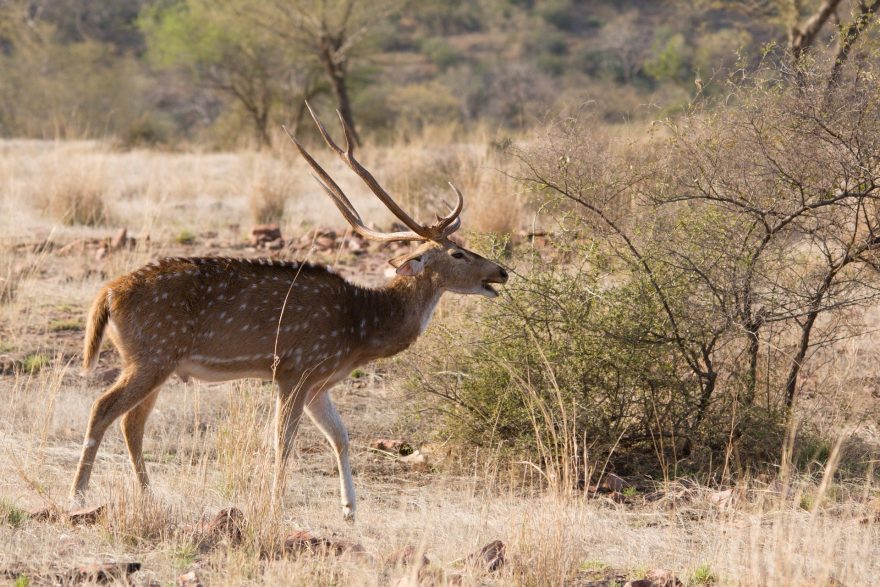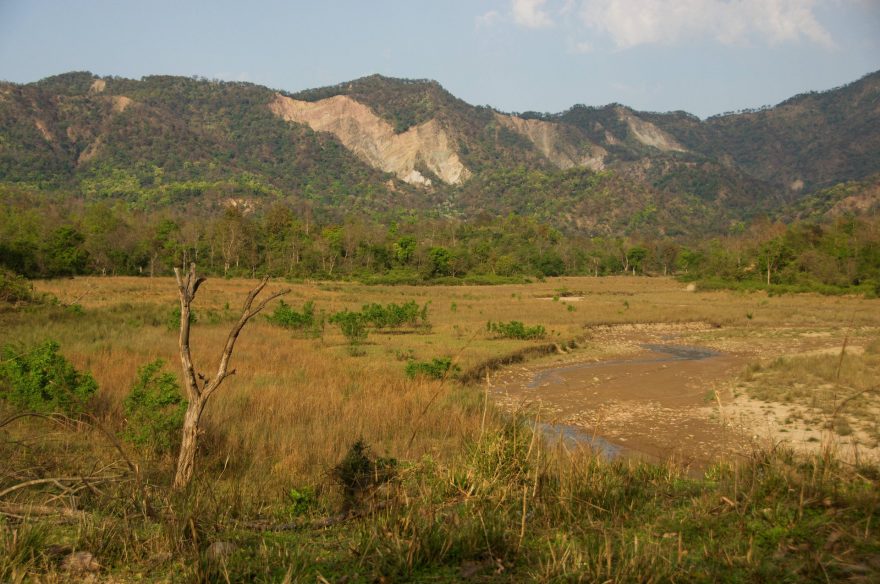 Kopcovitá krajina NP Rajaji skýtá krásné výhledy do krajiny. Na travnatých pláních se s oblibou pasou sloni a jeleni.
