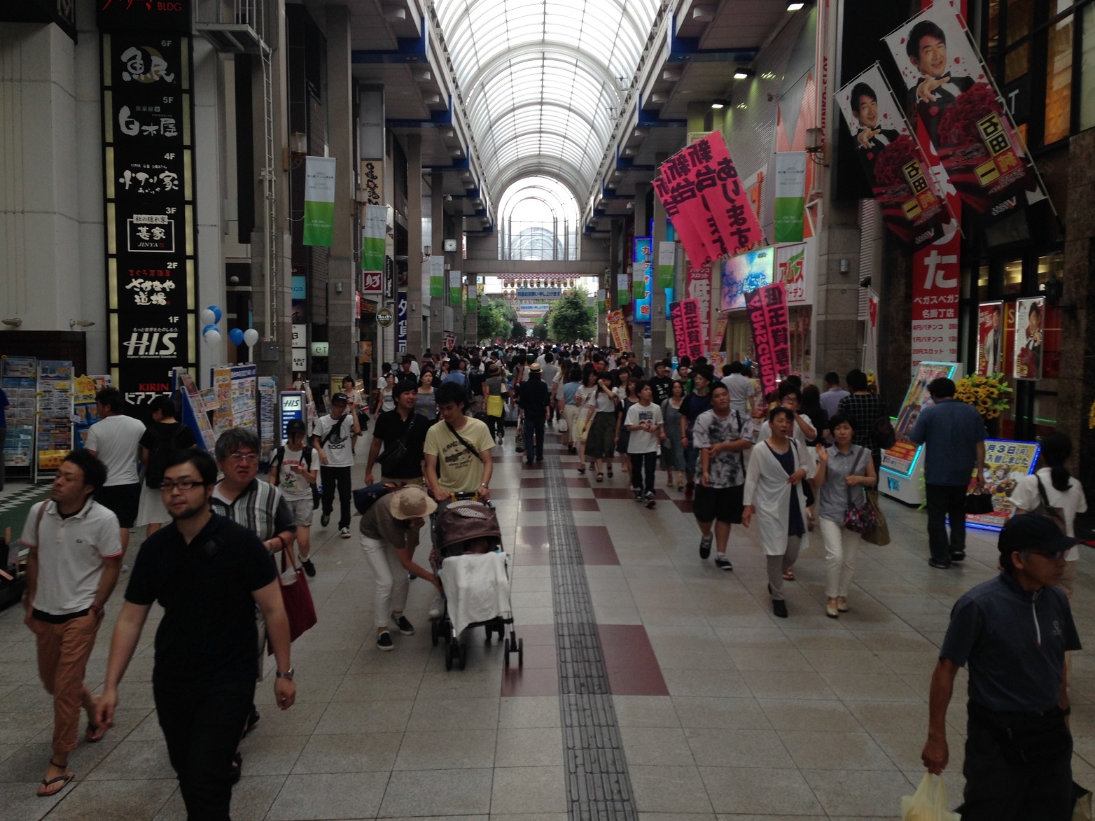 Hlavní nákupní ulice v Sendaii. Japonsko