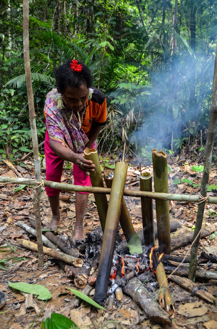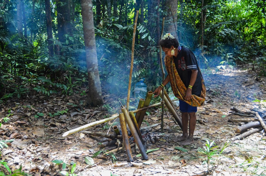 Vaření na ohni uprostřed pralesa