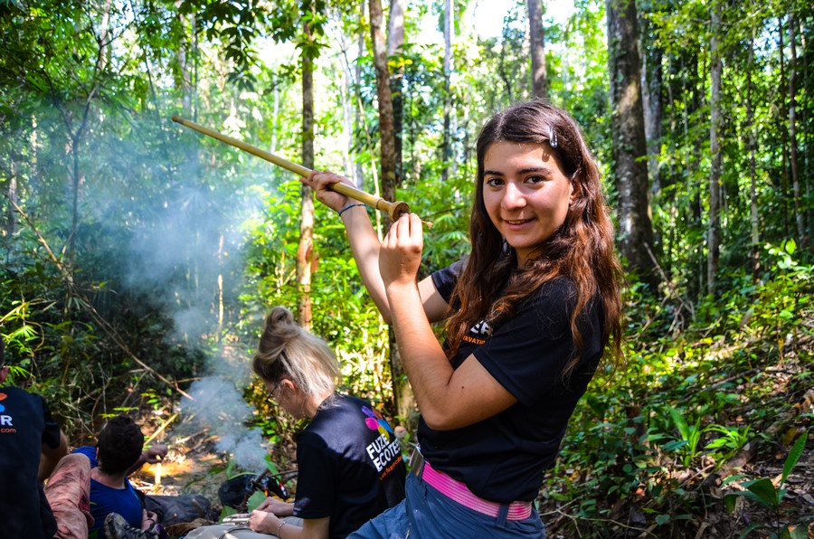 Jedna z dovedností přežití v pralese: výroba šipek do lovecké foukačky