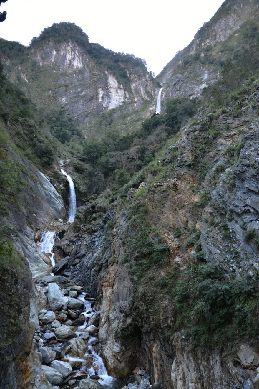 Voda z termálních pramenů se míchá se studenou vodou z řeky a vytváří příjemně teplá jezírka, Taroko, Taiwan.