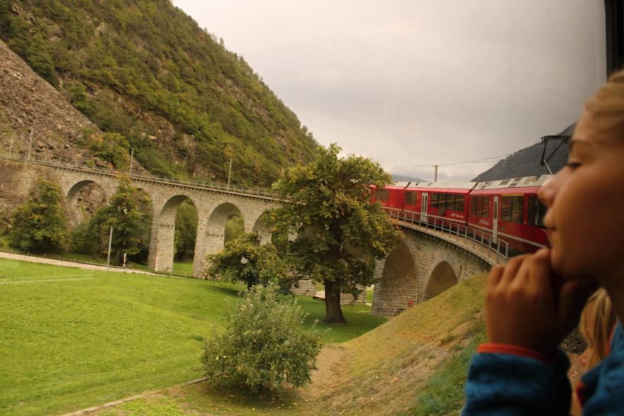 Bernina Express na své zastávce v Alp Grüm, Švýcarsko, autor: Petra Greifová