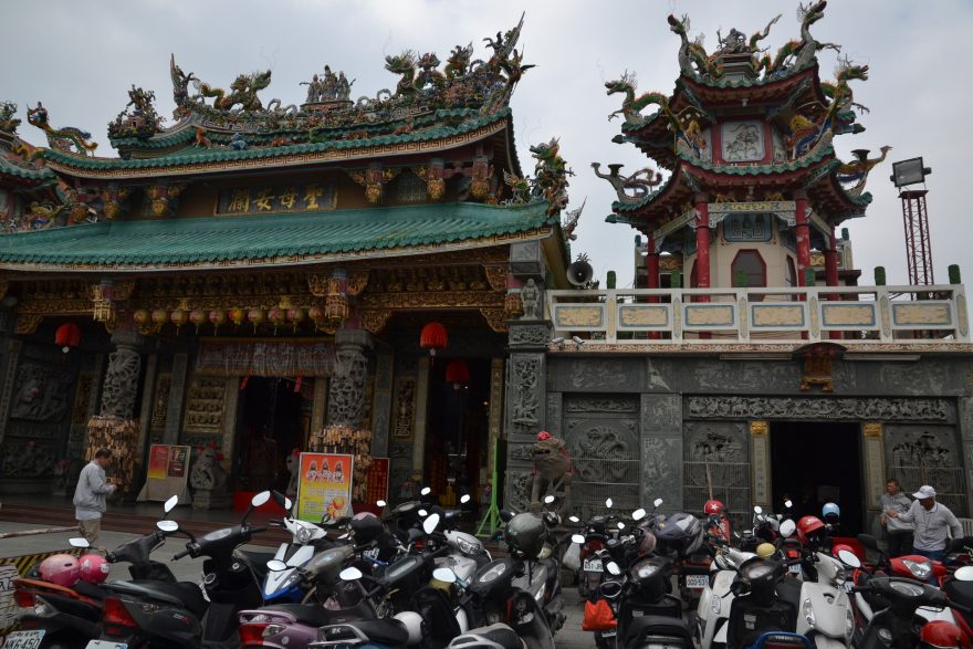 Vůně vonných tyčinek se line celým chrámovým komplexem. Po pronesení motbiteb je věřící umisťují do kadidelnic chrámu, Tainan, Taiwan.