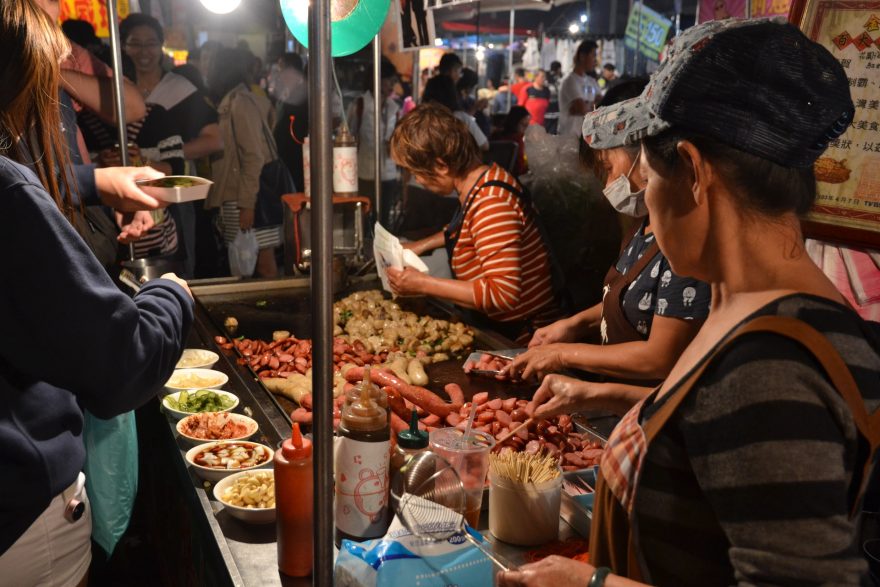Pokud nechcete příliš experimentovat, nudle se zeleninou a masem jsou celkem jistota dobré večeře, Tainan, Taiwan.