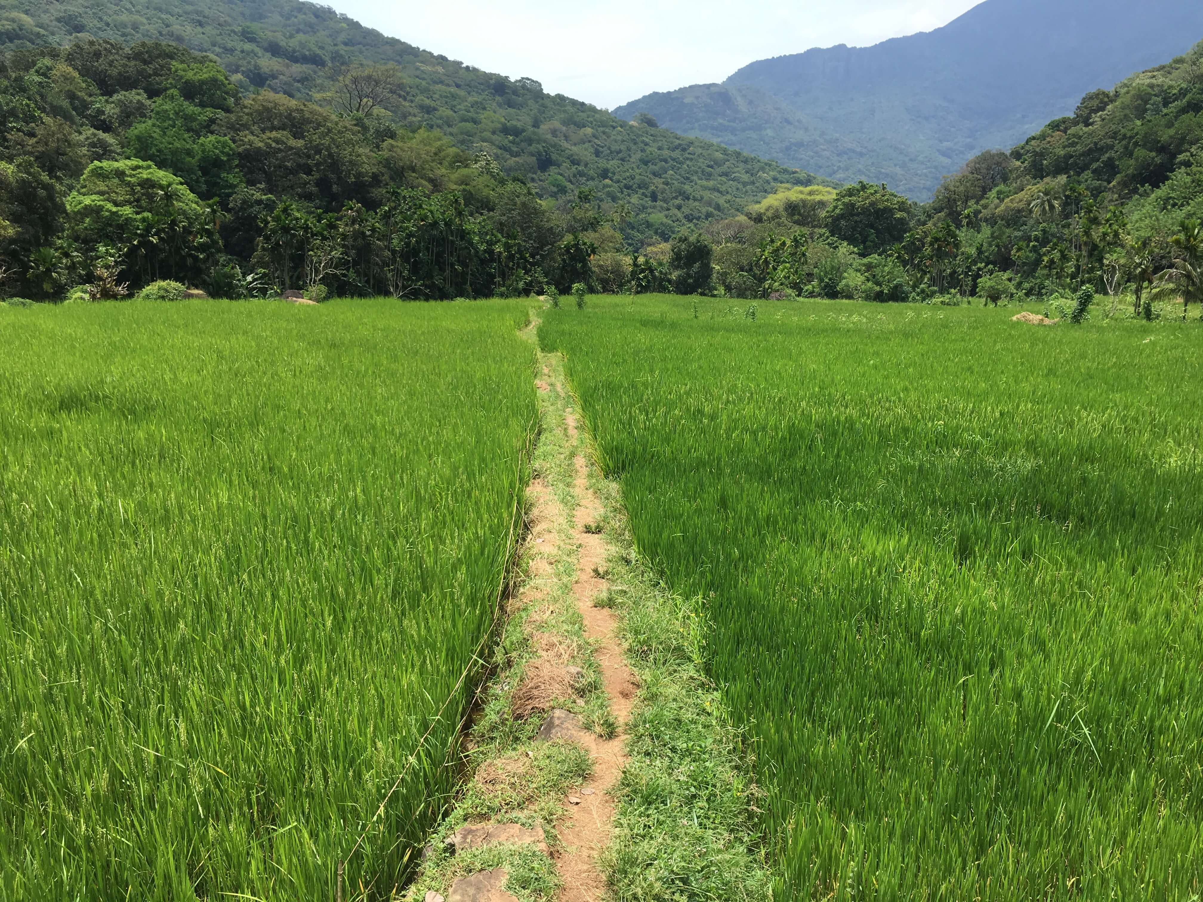 Procházka vesnicí mezi rýžovými poli, Srí Lanka