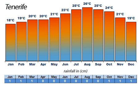 Průměrné roční teploty na Tenerife.
