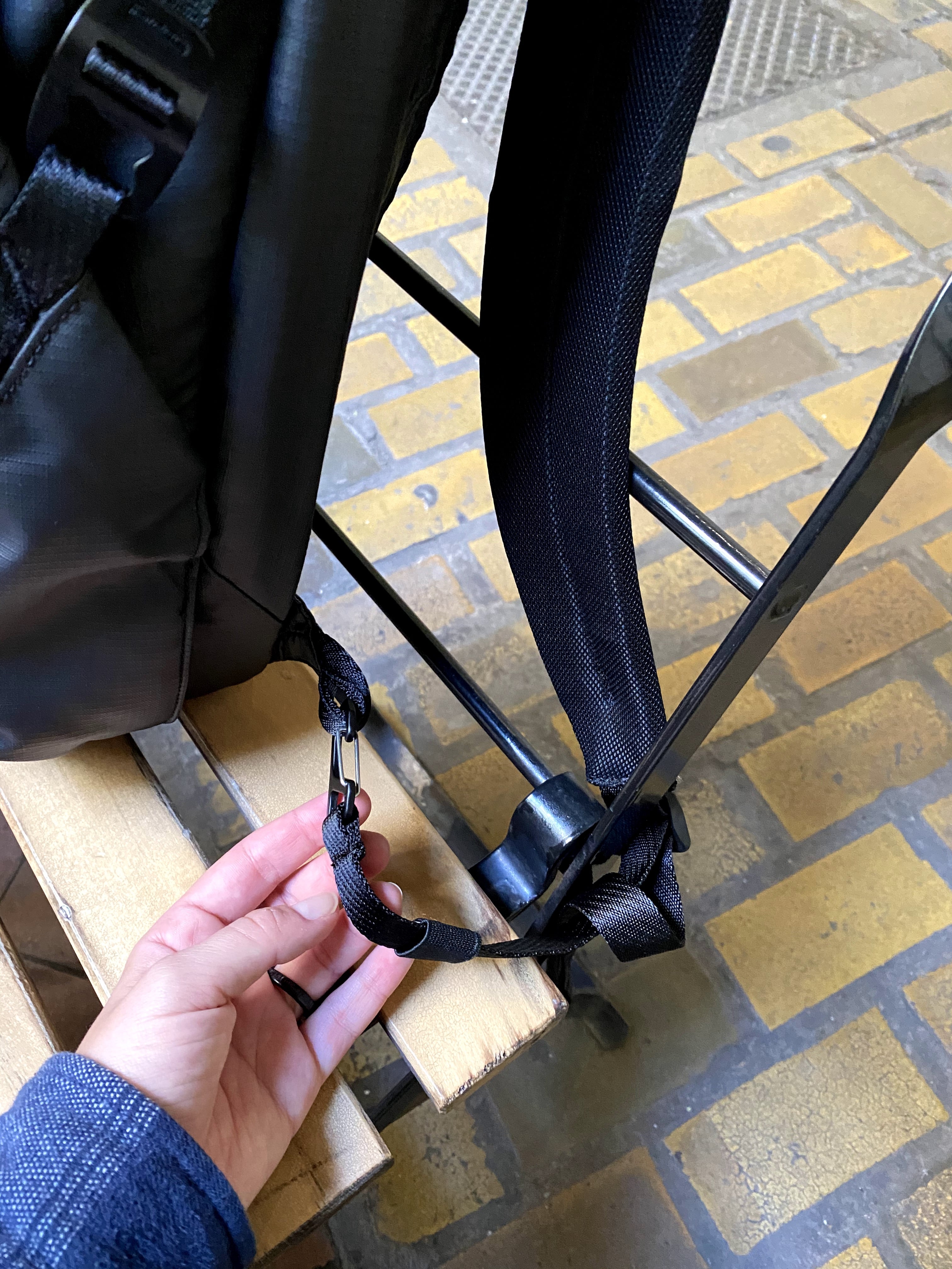 Skvělou ochranou před krádeží je, že jeden ramenní popruh můžete ze spodní části batohu odepnout a ovinout kolem pevného objektu.