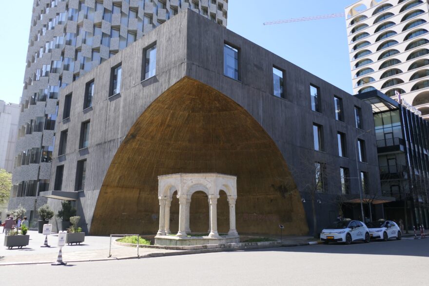 Socha nejslavnější Albánky - Matky Terezy před obnovenou katedrálou sv. Pavla
