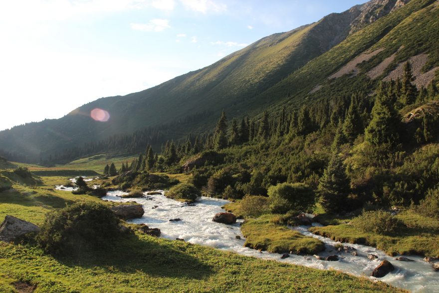 Putování na koník k jezeru Sonkul, Kyrgyzstán