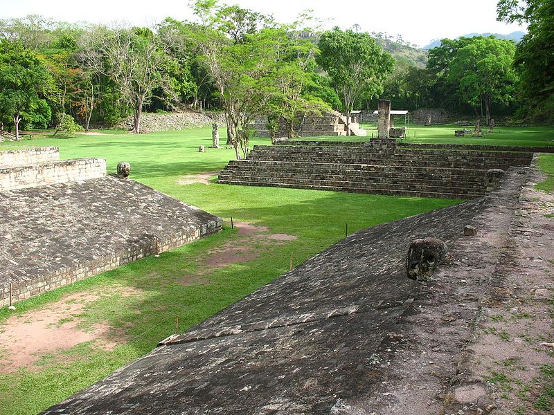 Starověké hřiště na Juego de pelota v Copánu