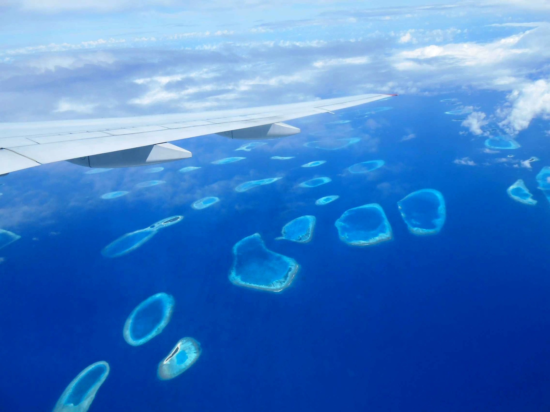 Pohled na Maledivy z letadla