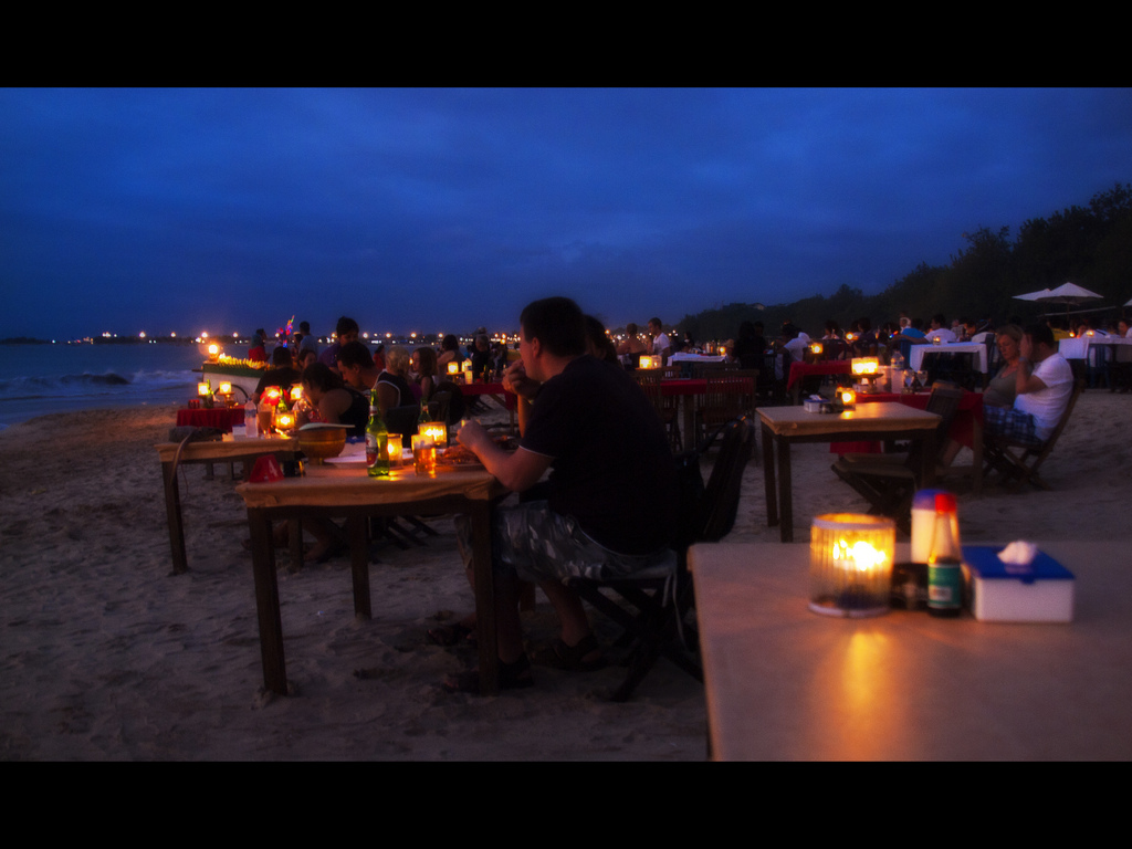Večeře na pláži, Bali, Indonésie