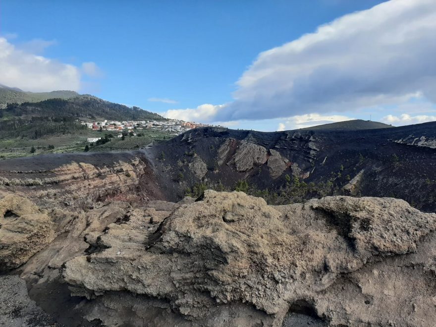 Vulkán San Antonio leží na jižním okraji městečka Fuencaliente. Ruta de los Volcanes, La Palma, Kanárské ostrovy