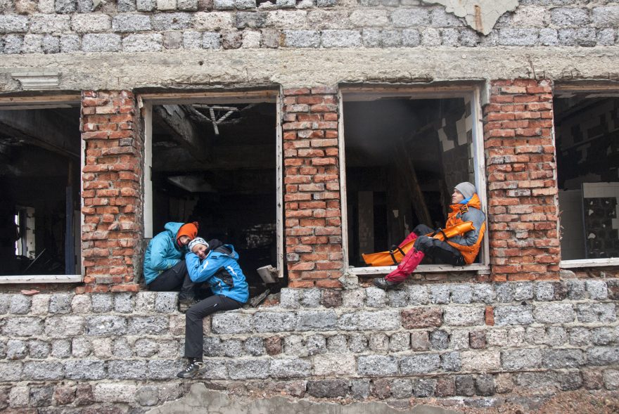 Dřevěný „tunel“ nad kolejemi sloužil k tomu, aby vlak projel i když nasněží několik metrů sněhu, Špicberky