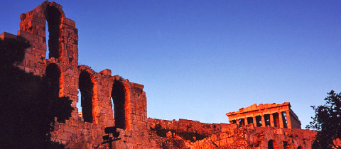 Dionýsovo divadlo – jeviště s výjevy z Dionýsova života