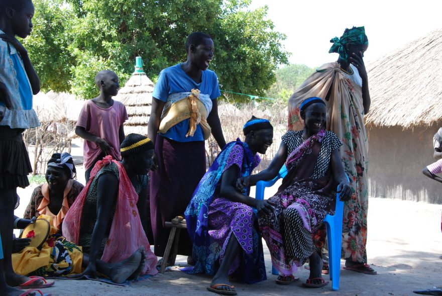 Diváci osvětového divadelního představení, tábor Rhino, Arua, Uganda