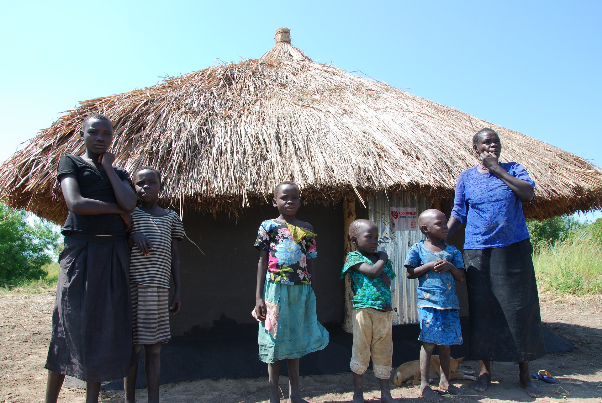 Ovdovělá Madelena s dětmi, tábor Rhino, Arua, Uganda