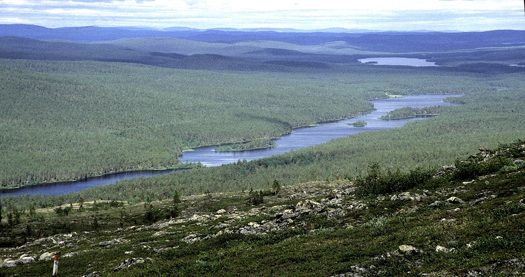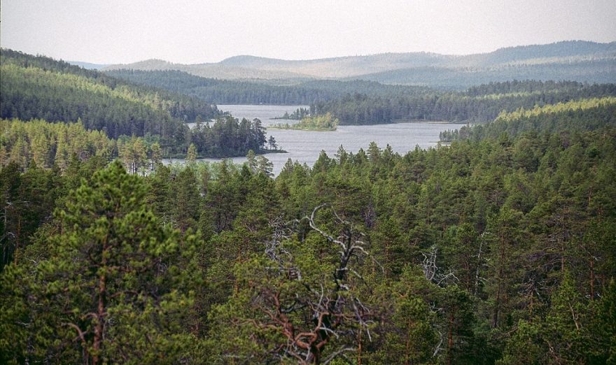 Pohled na jezera, která tvoří řeka Lemmen v národním parku Lemmenjoki