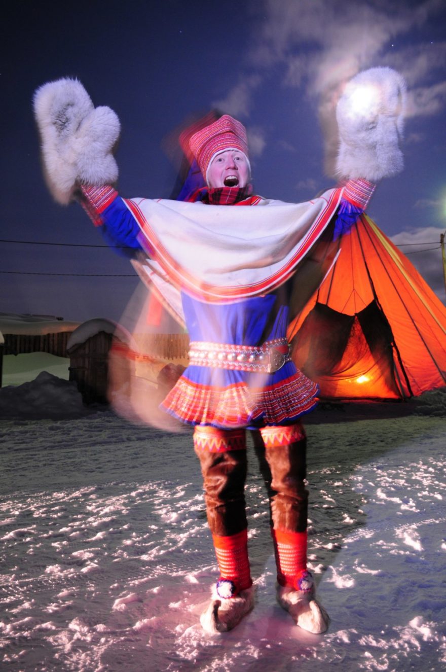 Zahájení Sámského filmového festivalu před velkou ledovou stěnou sloužící jako promítací plátno