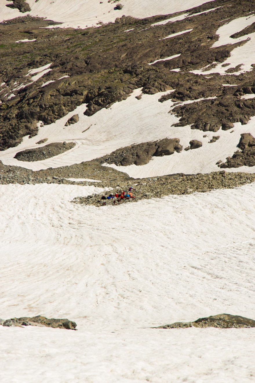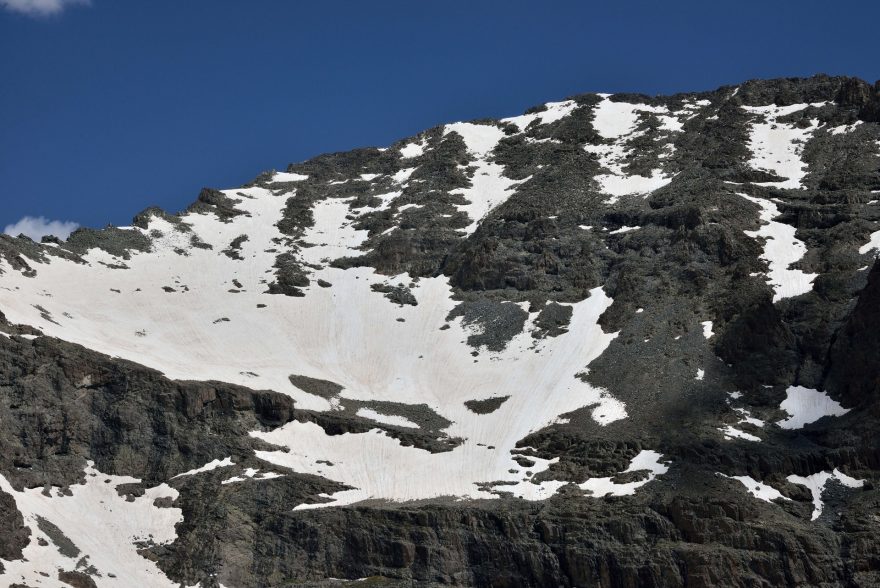 Sněhové pole, kde došlo k pádu – trasa pádu, hora Kačkar, Turecko