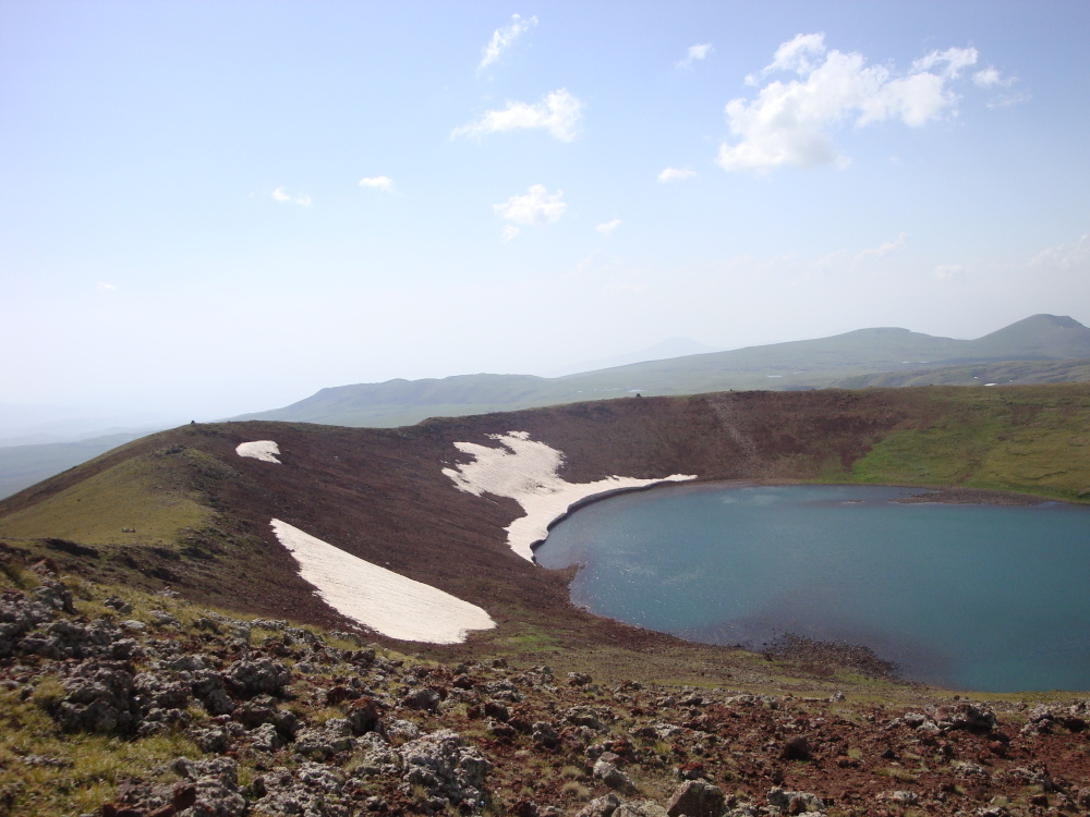 Jezero v kráteru vulkánu Azhdahak, 3597m.n. Geghama, Arménie