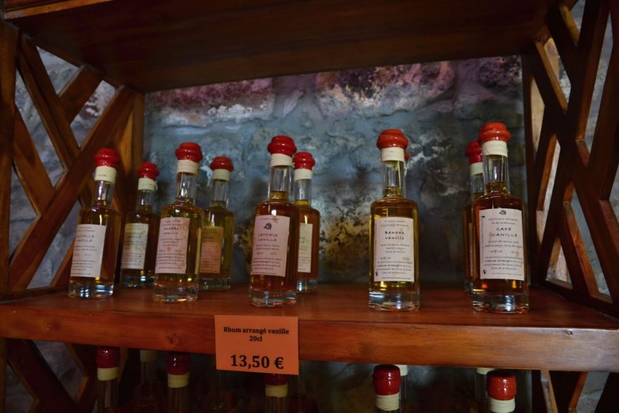Kolekce ochucených rumů arrangé, typických pro Reunion.