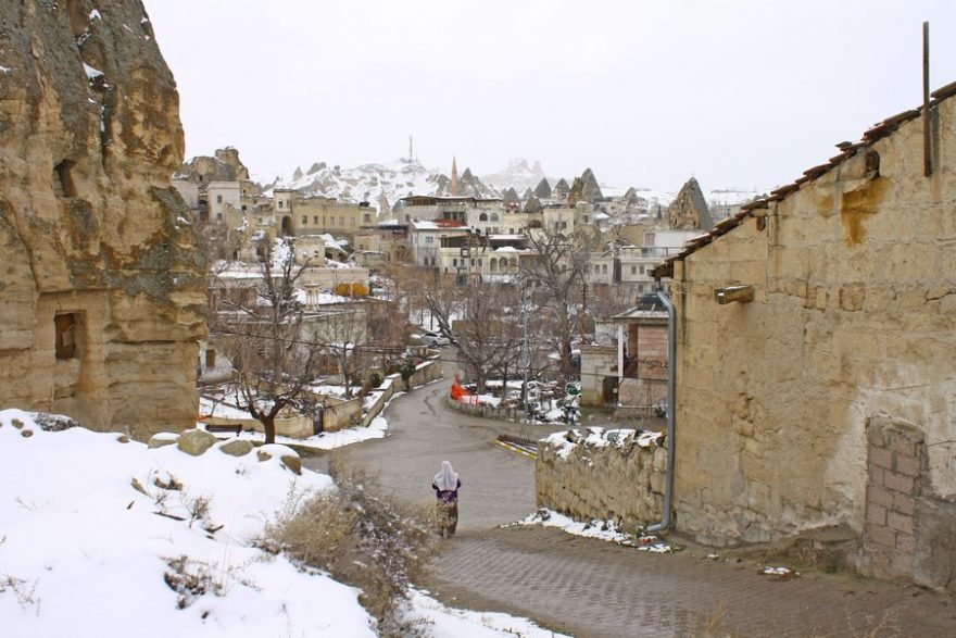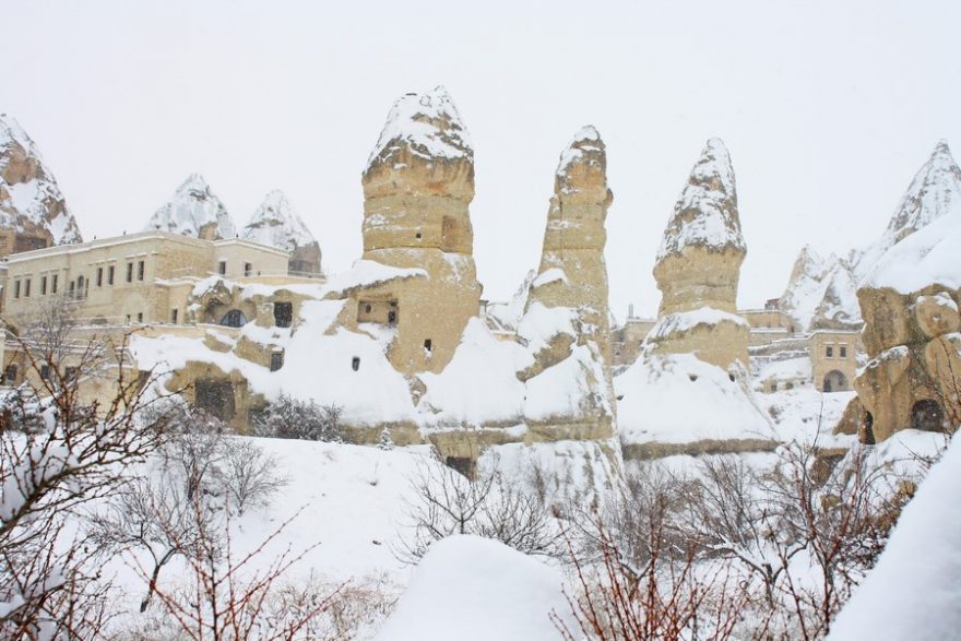 Galerie: Zasněžená turecká Kapadocie přináší romantiku a vyžaduje pořádné zimní vybavení