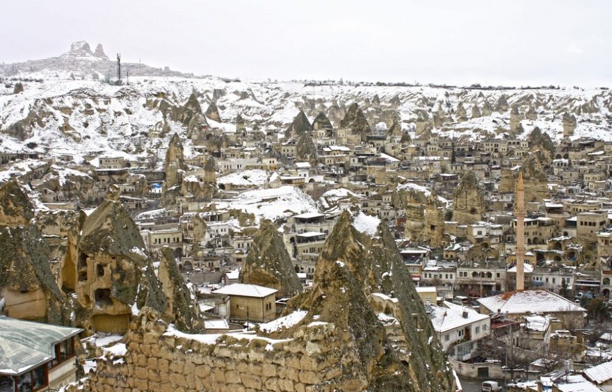 Galerie: Zasněžená turecká Kapadocie přináší romantiku a vyžaduje pořádné zimní vybavení