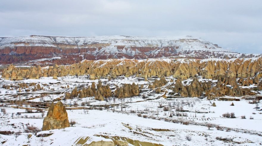 Galerie: Zasněžená turecká Kapadocie přináší romantiku a vyžaduje pořádné zimní vybavení
