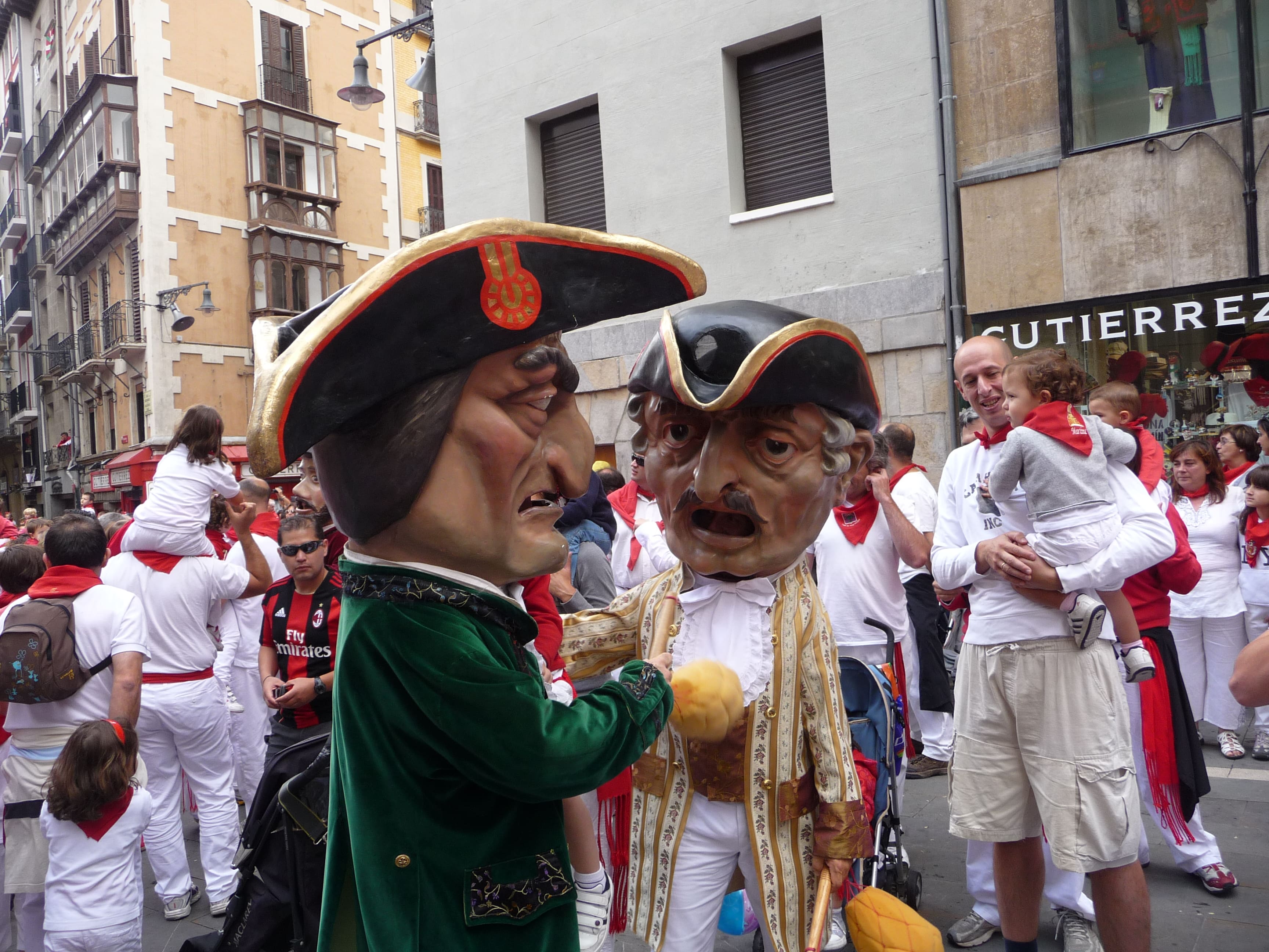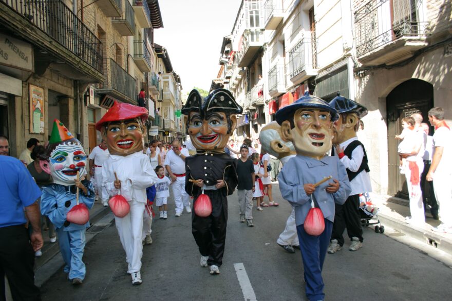 Kompars gigantických postav Gigantes a Cabezudos doprovázející průvod